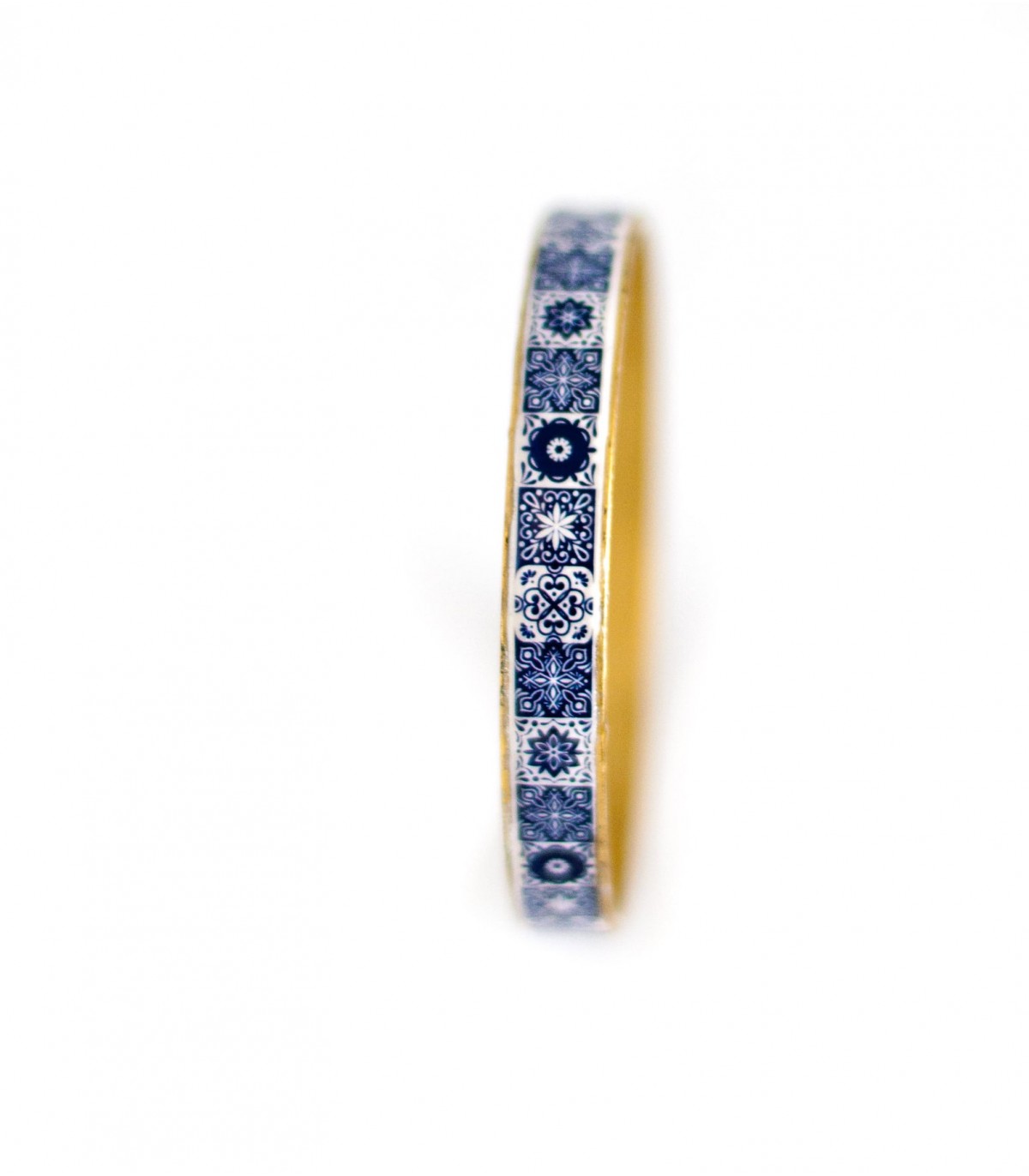 - Bracciale bangle rigido in ottone grezzo con motivo richiamante gli azulejos portoghesi