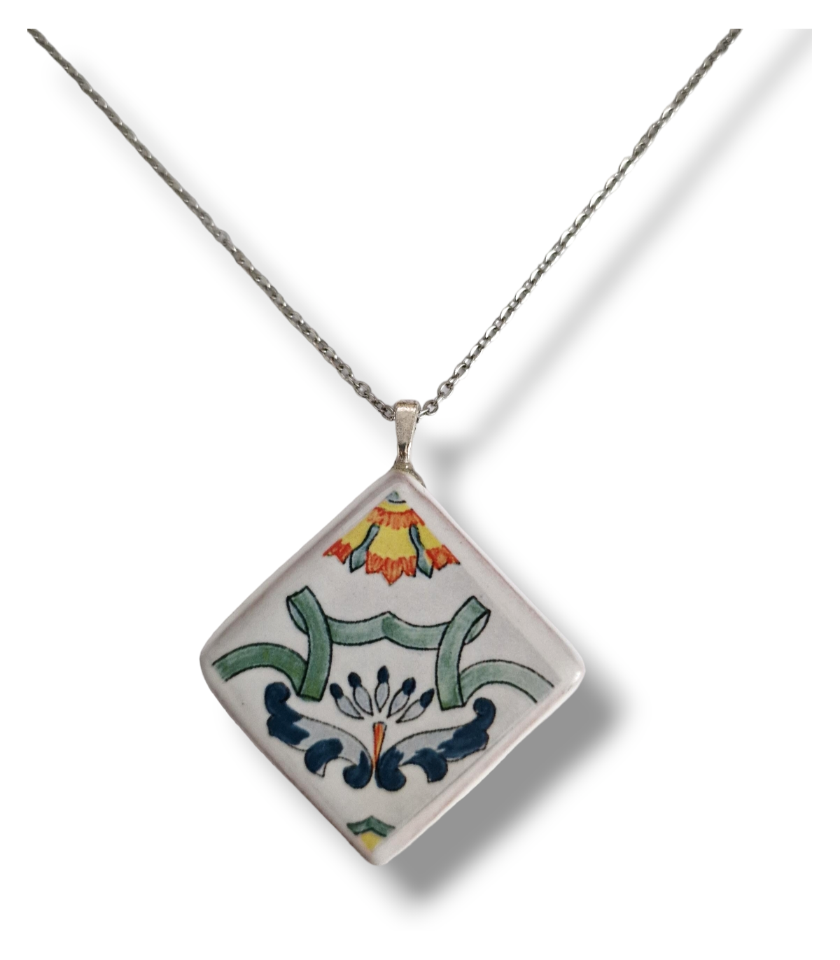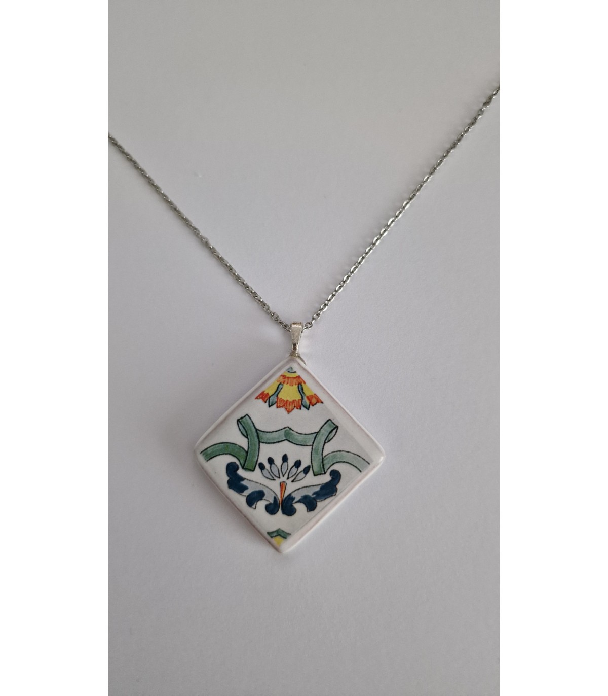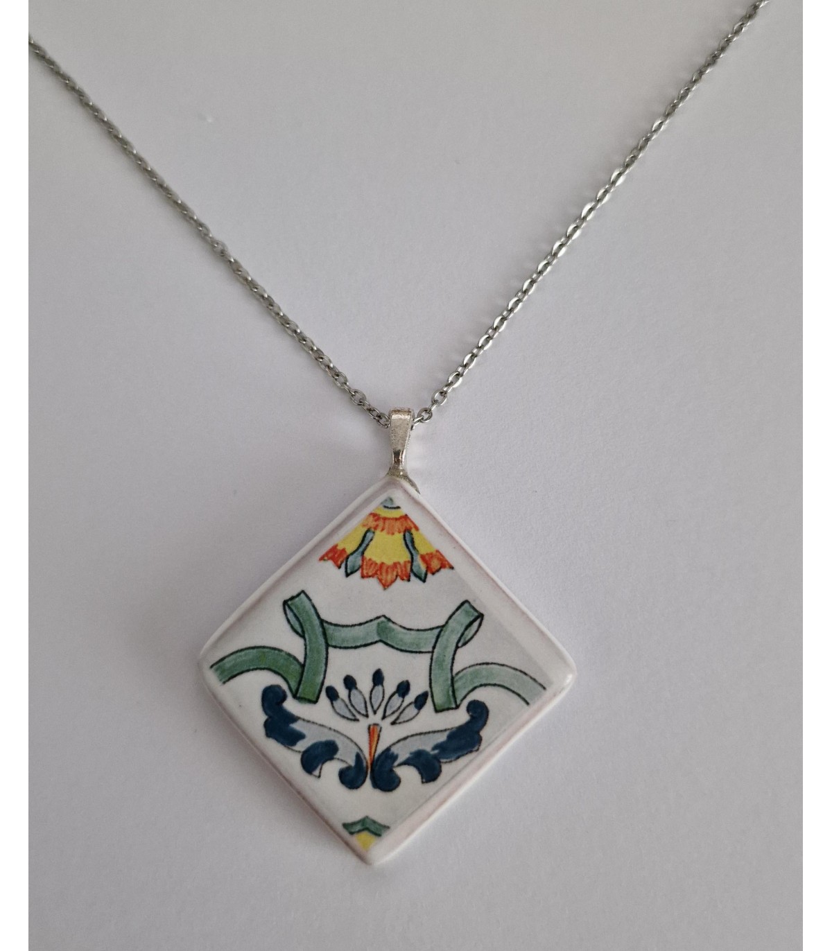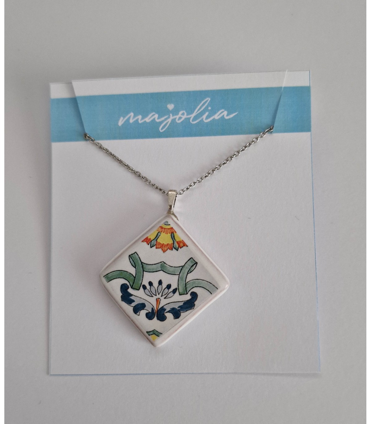 - Catenina morbida in acciaio inox con pendente in ceramica con motivo Maria Teresa (Positano), colore blu scuro, bianco, verde, arancio e giallo.