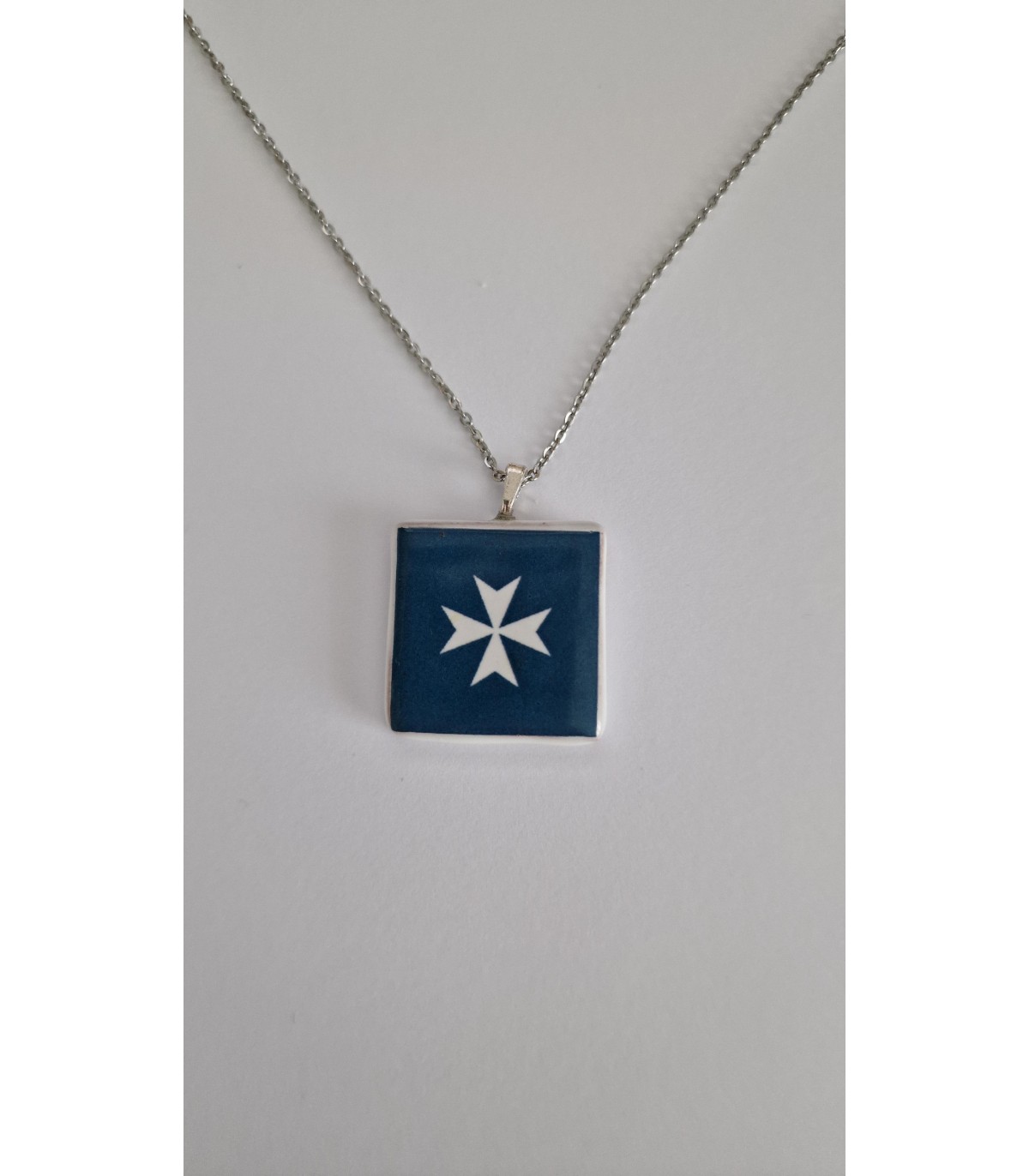 - Catenina morbida in acciaio inox con pendente in ceramica con croce di malta, colore blu scuro.