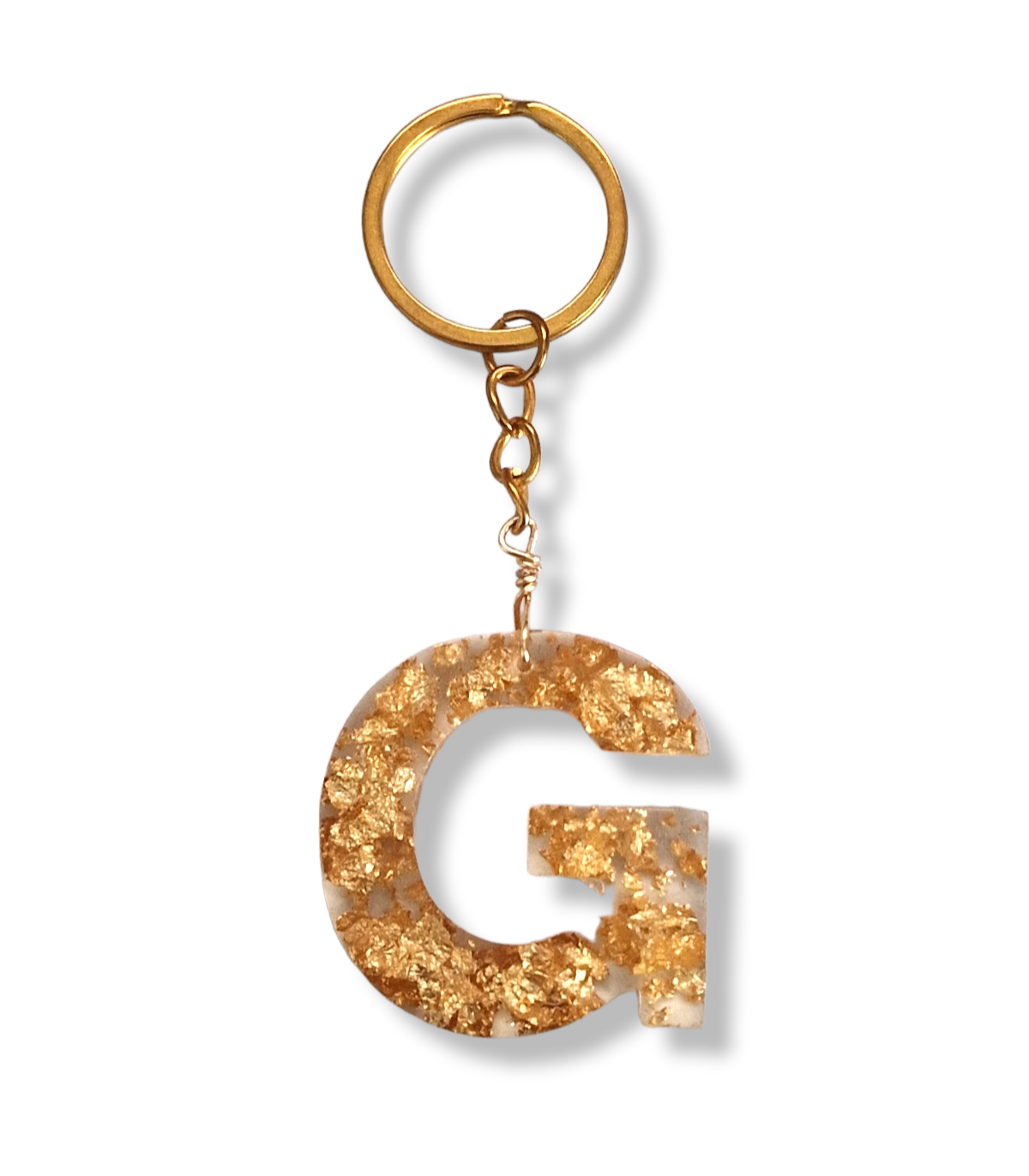 Portachiavi iniziale lettera in resina con foglia oro. Realizzato a mano.