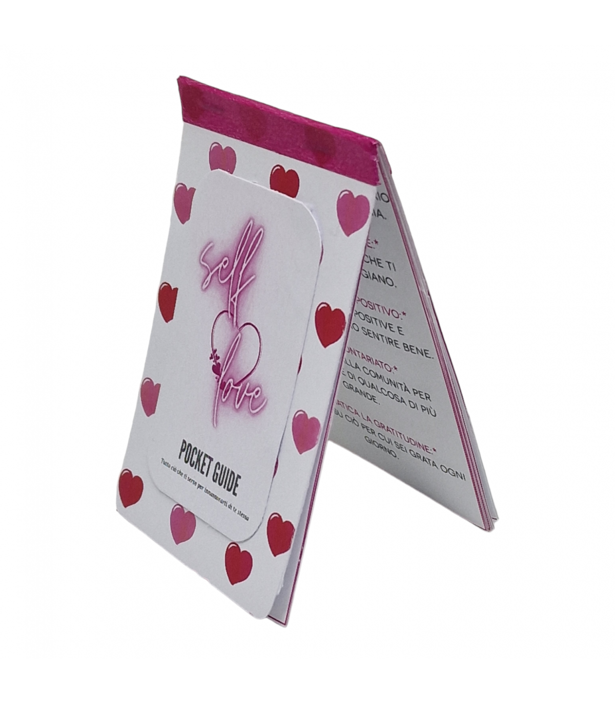 - la guida tascabile del self love (self love pocket guide) interamente ideata da Natalia Savastano e realizzata interamente a mano con 50 suggerimenti pratici per amarsi di più. Puoi portarla in borsa o metterla nel portafogli e sfogliarla quando sei giù di morale. I suoi colori ti porteranno subito allegria;