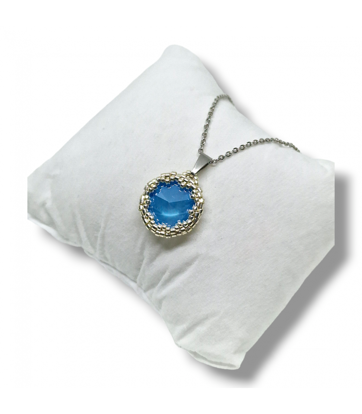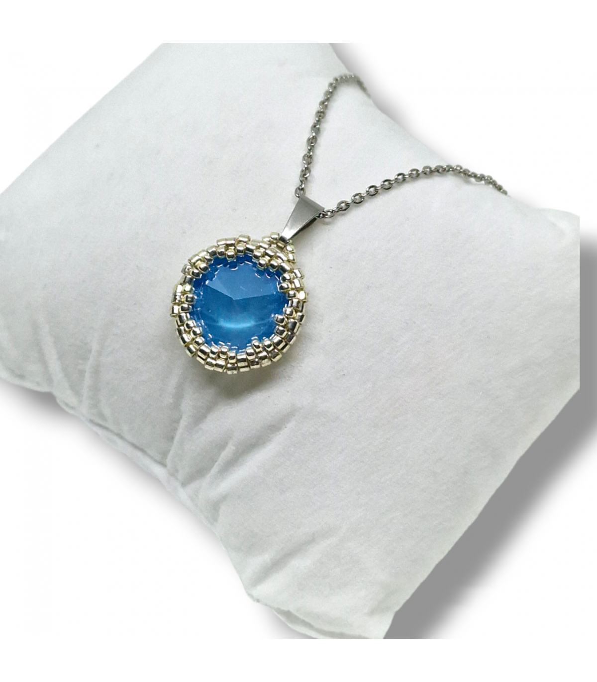 - Catenina in acciaio inox, spessore 1,5 mm con unto luce da 14 mm centrale incastonato con perline argentate. Lunghezza catenina circa 48 cm;