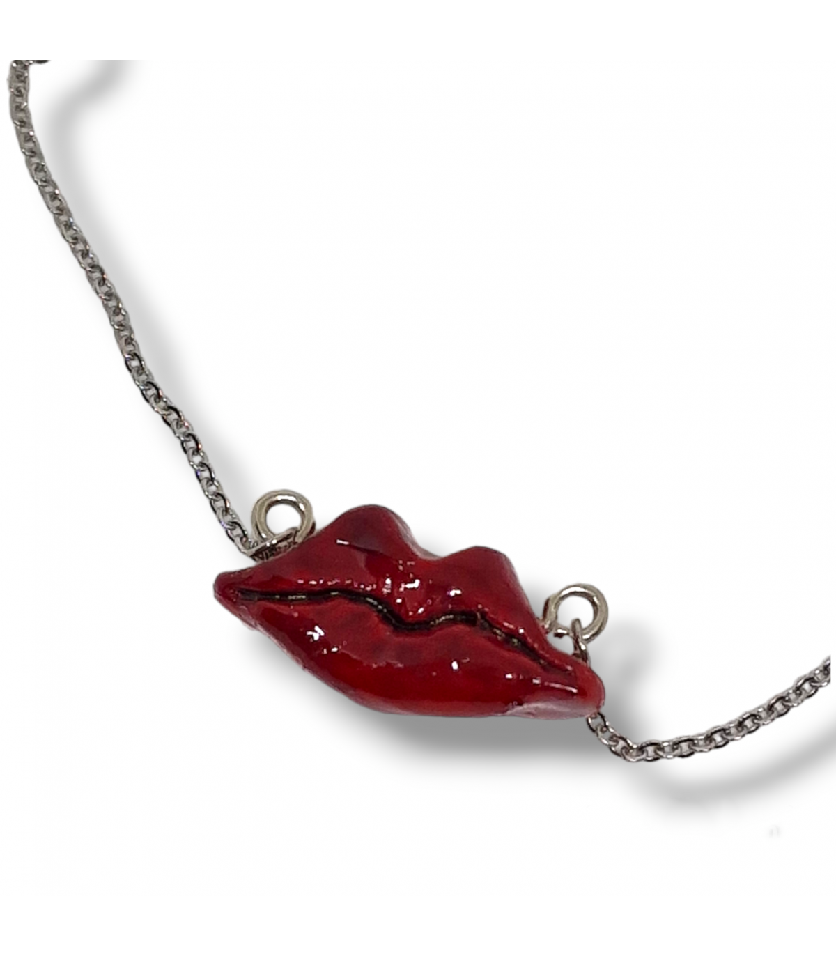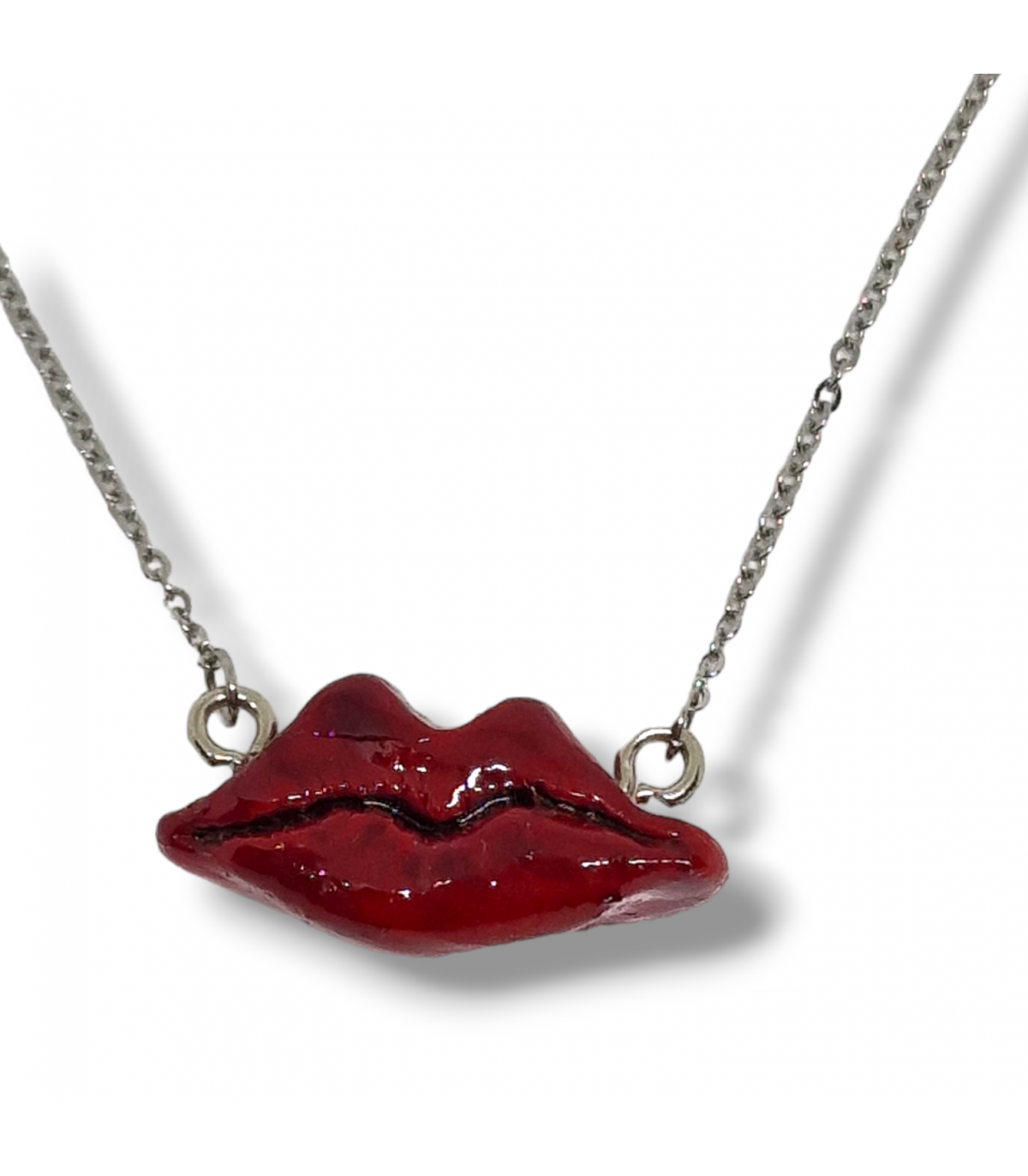 - collana con labbra rosse realizzate a mano con paste polimeriche e dipinte a mano;