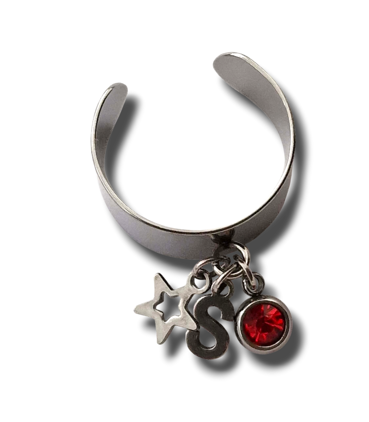 Anello in acciaio con charms con iniziale e punto luce (personalizzabile)